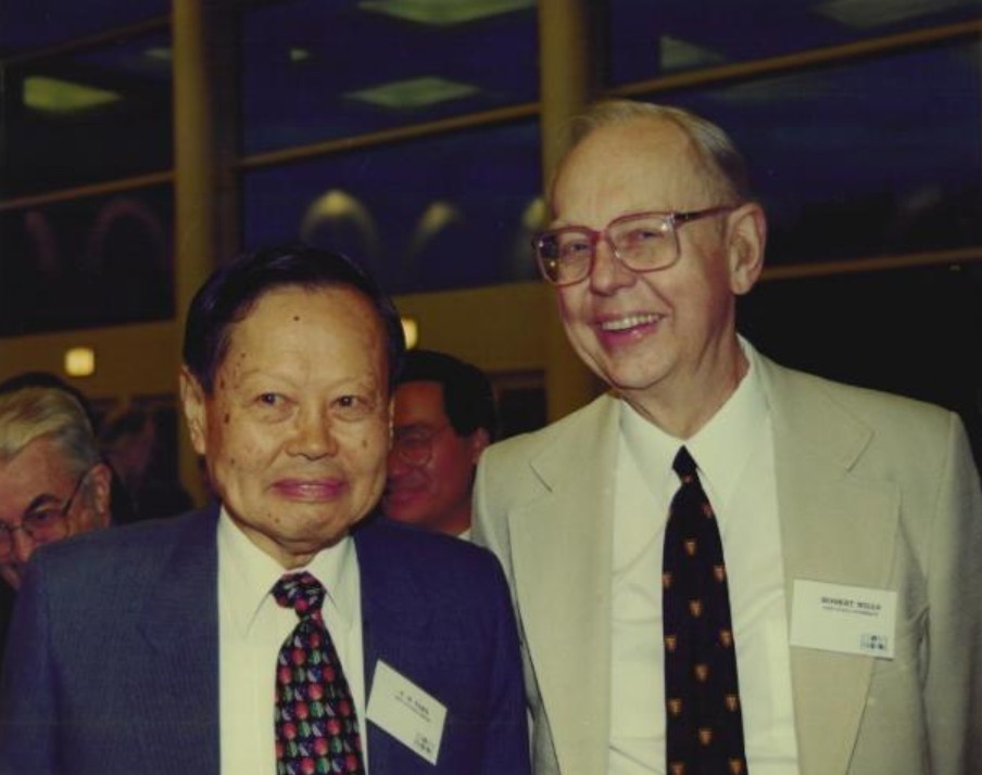 1999年杨振宁与米尔斯于石溪。(清华大学供图)
